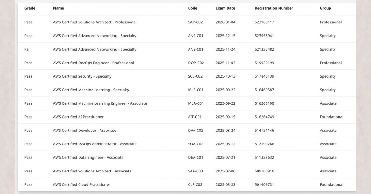 ですが気づけば、1年でAWS認定全冠を達成していました。