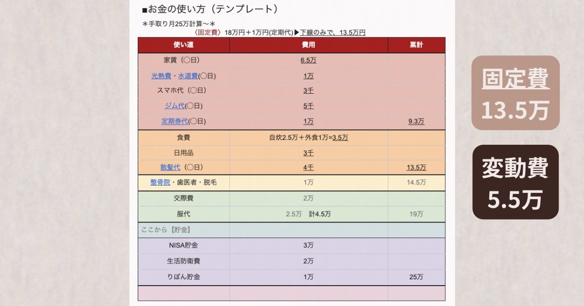 私の場合は、固定費を整えてから、変動費の支出を考えるようにしています。