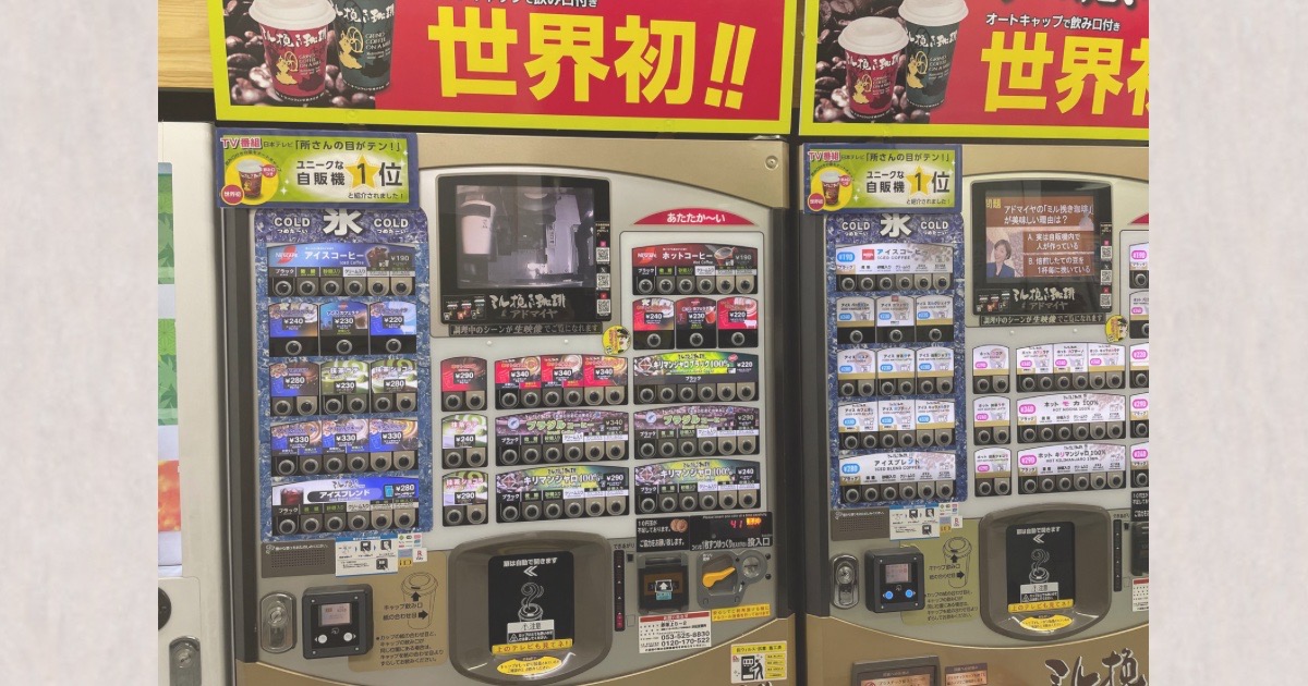 途中で立ち寄ったサービスエリアでは、SA名物の自動販売機を見つけ、抹茶ラテを購入しました。
