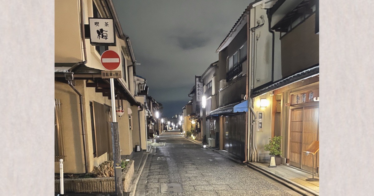 外もほどよく暗くなってきた頃、せっかく京都に来たのだから、周辺を軽く散策することにしました。